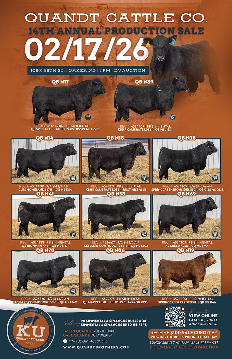 We hope you share our enthusiasm and anticipation for our 14th Annual Quandt Cattle Company Annual Sale. 2026 Sale